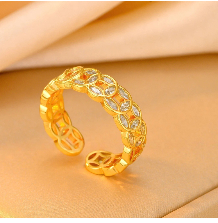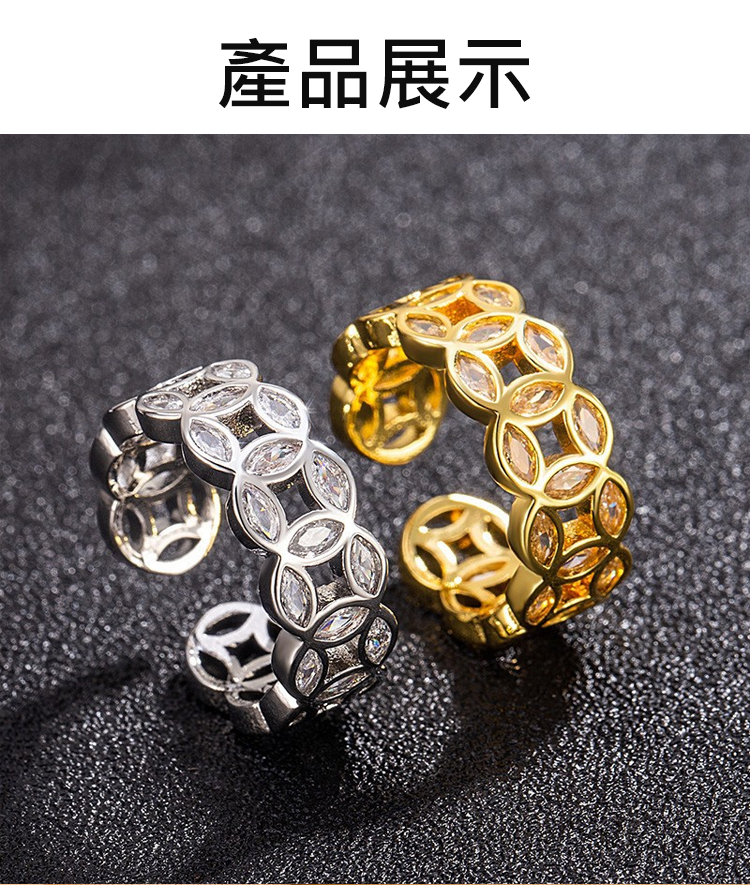 附鑽招財銅錢開口戒指