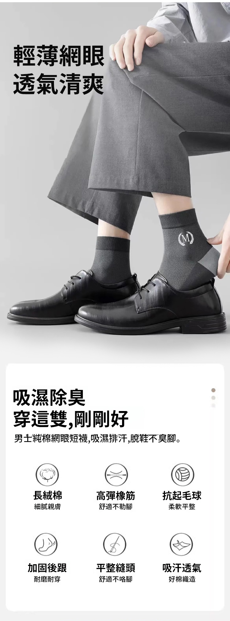 【輕薄透氣不悶腳】男士網眼襪